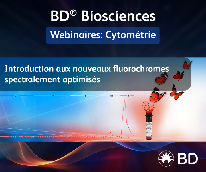 Cyril Wilmes (Société BD Biosciences) vous porpose un webinaire sur les nouveaux fluorochormes spectralement optimisés.